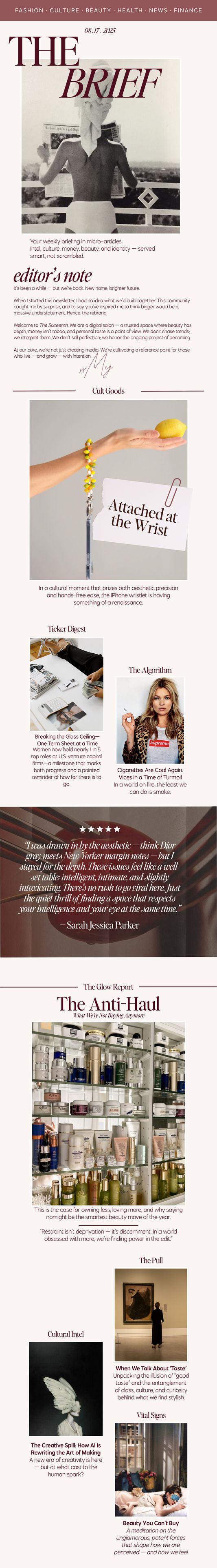 For more from The Sixteenth — including our private salon, style dispatches, and deeper dives into culture, beauty, commerce, and the art of living — visit thesixteenth.com